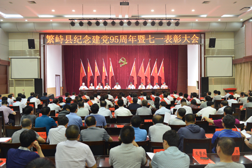 在建黨九十五周年來臨之際,6月30日上午,繁峙縣專門召開建黨九十五周年暨“七一”表彰大會,隆重對條條戰(zhàn)線涌現(xiàn)出來沙國平、張宏偉、劉成等100名優(yōu)秀黨員,李全銀、韓春芳等48名優(yōu)秀黨務(wù)工作者,繁城鎮(zhèn)北城街黨總支、筆峰村黨支部等60個(gè)優(yōu)秀基層組織進(jìn)行了表彰。