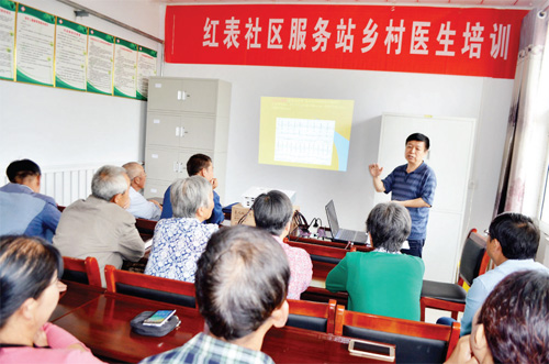 本報(bào)訊 7 月15 日,忻州市中醫(yī)院主任醫(yī)師、心病科專家張崢,來(lái)到五臺(tái)縣陽(yáng)白鄉(xiāng)衛(wèi)生院紅表社區(qū)服務(wù)站,為鄉(xiāng)村醫(yī)生、村民、患者進(jìn)行慢性病防治健康知識(shí)宣傳教授。課上,他向鄉(xiāng)村醫(yī)生重點(diǎn)講授了冠心病的分類、預(yù)防、臨床表現(xiàn),詳細(xì)介紹了高血壓、冠心病治療的臨床經(jīng)驗(yàn),受到了大家的一致好評(píng)。