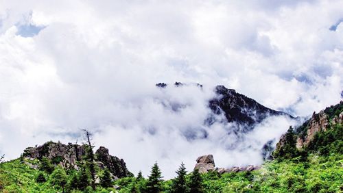 蘆芽山系管涔山的主峰,位于寧武縣境內(nèi),海拔2739 米。這里峰巒重疊,簇?fù)泶笮?00 多座山峰,山峰尖峭,怪石嶙峋,林木茂密;夏季的蘆芽山多陣雨,陣雨過后日出天晴,必有氣勢磅礴的云霧景觀出現(xiàn),如夢幻仙境,令游人迷醉。(曹建國)