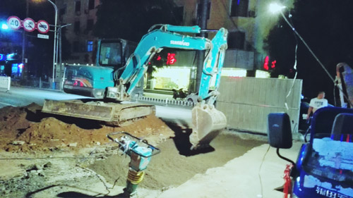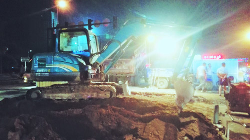 7月26日晚上9多了,原平市政公司干部職工仍然在京原北路與平安大街交匯的十字路口搶修塌陷的路面。該路段是原平的交通要道,車(chē)流量大。路面塌陷后,時(shí)政公司及時(shí)安排連夜切段搶修,不誤車(chē)輛通行,把“真抓實(shí)干,馬上就辦”體現(xiàn)在實(shí)際行動(dòng)中。(吉建平 攝)