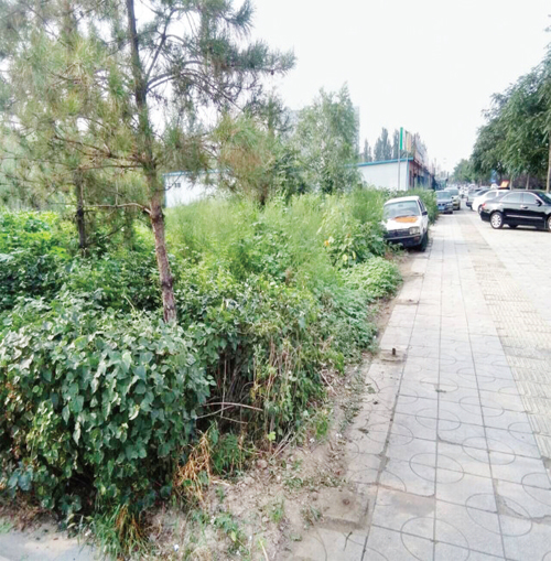 圖為新建北路一側(cè)長(zhǎng)滿了野草