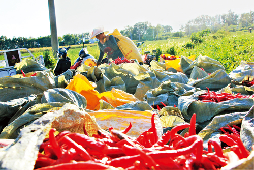 9月6日,原平市南灘種植合作社正組織農(nóng)村閑散勞動力收獲辣椒,實(shí)施計(jì)件工資制。原平市種養(yǎng)合作積極為農(nóng)民就業(yè)搭建平臺,不僅解決農(nóng)村閑散勞動力的就業(yè)問題,而且通過長期的勞動經(jīng)驗(yàn)積累,培養(yǎng)了一技之長的農(nóng)民工,成為種養(yǎng)技能型人才。(吉建平 攝)