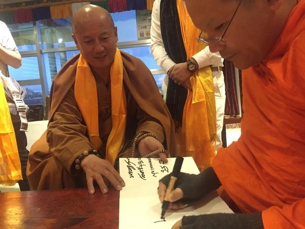 五臺山東臺頂望海寺住持釋覺一法師為促進(jìn)中泰友好文化交流,于2016年9月23日攜眾弟子和法師親自在羅延洞采集的圣水、圣土遠(yuǎn)赴西寧,參加中泰文化交流活動并同泰國僧人共進(jìn)午餐。