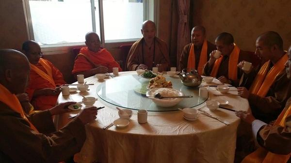 五臺山東臺頂望海寺住釋覺一法師攜眾弟子將代表中國五臺山法界出席此次活動。抵達(dá)青海省西寧市后,釋覺一法師與泰國僧人、泰國文化部部長等國際友人共進(jìn)午餐并與眾僧人交流了兩國的佛教文化。