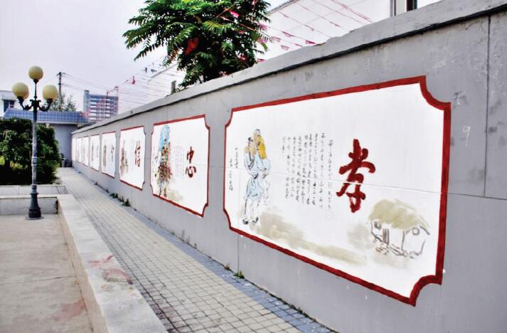 日前,我市城區(qū)創(chuàng)衛(wèi)工作如火如荼進(jìn)行中,城中村街面整治作為創(chuàng)衛(wèi)工作的薄弱環(huán)節(jié),對其改造尤為重要。10月12日,記者在我市城區(qū)的逯家莊看到,創(chuàng)衛(wèi)工作人員對粉刷后的街道墻壁進(jìn)行美化,一幅幅生動的“忠孝廉恥圖”,既蘊藏著文化內(nèi)涵,又起到了美觀效果,成為街頭一道靚麗的風(fēng)景線。(張志遠(yuǎn) 孫明 攝)