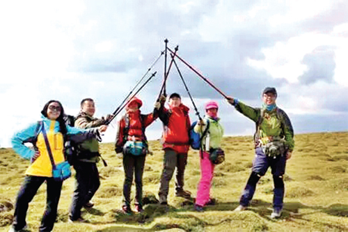 我們不曾相識,一點愛溫暖了人間。從東臺下來,一開始就不見了女兒,還好有閨蜜在身邊談天說地,偶爾“龍哥”擦身而過扔下一句笑話,轉(zhuǎn)眼就不見了蹤影;劉教授常跑國外,腿很長,頭戴禮帽,不用登山杖,腳步輕盈;“大師兄”人見人愛,他的腰間掛一個袋子,是用來裝路上撿到的水瓶、塑料袋、果皮等垃圾的,他身上的雨衣、登山杖好像是給大伙準備的,誰需要就送給誰;郭大律師看見剛從山下上來,上氣不接下氣、氣喘不停的同行人,忙把自己的雨衣翻過來鋪在大石頭上讓人坐。“神腿”總是在隊伍的最后,落在后面的人,只要看見“神腿”就信心倍增,和“神腿”合張影,比出個“二”的手勢,仿佛自己也是“神腿”了。吳老師人很好,熱情地幫我拍了一張“打坐”的美照,真可謂不懂攝影的老師不是優(yōu)秀企業(yè)家;見到海濤群主不時從山上往山下跑,照顧落在后面的人;又遇見一位腰間掛垃圾袋的人,他走近一頭正在喂奶的母牛,像老朋友一樣輕輕地撫摸這牛的頭部,聽說他是講國學的馬老師。佛家講的是一種緣分,有緣自然來相會,我和馬老師聊著爬上了一個山頭,心頭一怔,馬老師不就是我們的學問大咖嗎?我們的八月大朝臺隊伍里藏龍臥虎,稍不留神,大咖就會從你身邊溜走。正說著,閨蜜劉老師從我身邊經(jīng)過,腰間掛著一袋子垃圾,直向前面一個易拉罐追去……