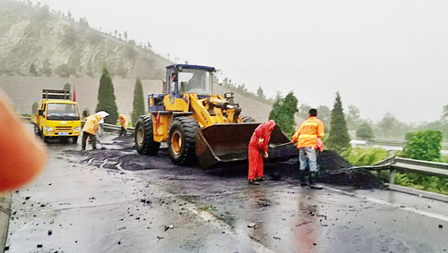 7月6日凌晨3點,忻州高速公路養(yǎng)護工區(qū)接到忻州高速公路管理處電話通知:K654路段通往三家村收費站互通匝道入口處,有一車輛側(cè)翻橫于路中拋撒煤面,影響了公路正常通行,需及時處置。養(yǎng)護工區(qū)接到通知后立即啟動應(yīng)急預(yù)案,出動搶險人員9名、工具車一輛、皮卡車一輛、鏟車一臺、自卸汽車一臺火速趕往現(xiàn)場。搶險人員冒著風(fēng)雨,按照標(biāo)準(zhǔn)設(shè)置了警示標(biāo)志,經(jīng)過三個多小時的緊張工作,清掃工作全部完成,路面恢復(fù)整潔暢通,保障了高速公路的安全通行。(任淑萍 攝)
