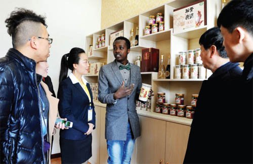 本報訊12月2日,在太原舉行的特色農(nóng)產(chǎn)品展示會上,來自肯尼亞的黑人小伙孔健為靜樂縣種植的藜麥產(chǎn)品代言。在肯尼亞,孔健自小就是吃藜麥長大的,展示會上,山西省農(nóng)科院與山西金壤惠生物料技有限公司合作推出的10余種藜麥深加工產(chǎn)品讓他眼花繚亂。據(jù)悉,目前靜樂縣全縣藜麥種植總規(guī)模已擴大至1萬畝,藜麥深加工產(chǎn)品極大助力了當?shù)剞r(nóng)戶脫貧致富。(鐘清)