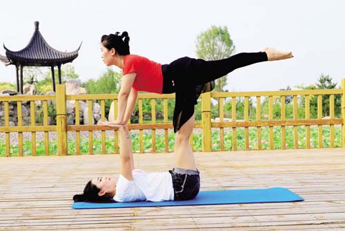 8月1日,天牙山風(fēng)景區(qū)荷花盛開(kāi),瑜伽達(dá)人趁著這美景正在晨練。