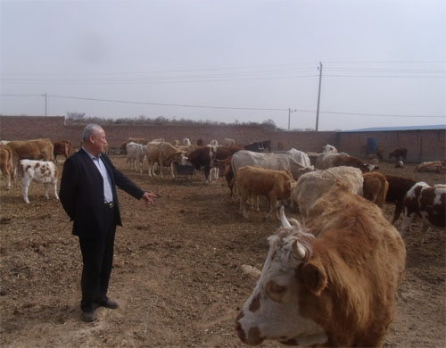 站在牛群中,老劉身形高大,一副“牛司令”的派頭。他看看這頭牛,又摸摸那頭牛,指著一頭黃白花色的牛說:“這叫西蒙達(dá)爾牛,原產(chǎn)于瑞士西部的阿爾卑斯山區(qū)。這頭體型高大的牛叫夏洛萊,原產(chǎn)于法國(guó)中西部到東南部地區(qū),是舉世聞名的大型肉牛品種,生長(zhǎng)快、肉量多、耐粗放,很受國(guó)際市場(chǎng)歡迎?!?/p>