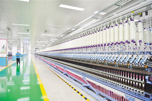 山東省鄒平縣魏橋紡織股份有限公司智能化車間里,12.5萬紗錠智能化生產(chǎn)線運(yùn)轉(zhuǎn)有序,工作人員只需要觀察手中的智能設(shè)備就可以了解所有機(jī)器的運(yùn)行狀況,原本需要10人完成的工作現(xiàn)在只需要1人。本報(bào)記者 高興貴攝