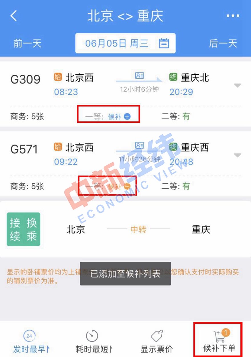 5月22日起,中國鐵路12306網站和APP在前期試點的基礎上,將鐵路候補購票服務擴大到所有旅客列車。此前,鐵路部門選取了2019年春運能力部分緊張方向列車的長途區(qū)段,開展候補購票服務試點。