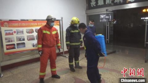 捕捉蝙蝠歸隊之后,所有消防員都接受殺菌消毒。 周洋 攝 同日21時許,一只蝙蝠飛行中撞在了靈石縣新建街一戶居民的紗窗門上無法動彈。因擔(dān)心蝙蝠攜帶病毒較多,居民不敢處置,當(dāng)即報警求助。