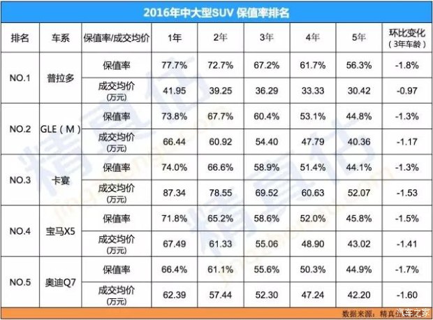 中大型SUV中,豐田普拉多和蘭德酷路澤系列以及雷克薩斯LX570基本優(yōu)勢(shì)明顯,余下也主要是德系為主,這一空間保值率表現(xiàn)穩(wěn)定車型幾乎看不到其他品牌。