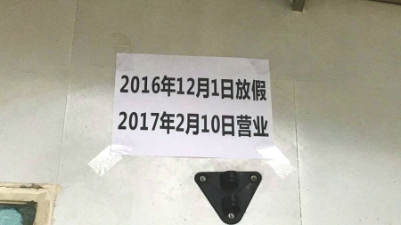 1月18日,路過(guò)成都錦江區(qū)中道街的市民楊先生發(fā)現(xiàn),平時(shí)生意爆滿的串串店關(guān)門了。在門口的墻上,貼著一張告示:2016年12月1日放假,2017年2月10日營(yíng)業(yè)。楊先生算了算,這個(gè)假期足足71天,讓人羨慕不已。