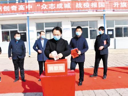 自新冠肺炎疫情發(fā)生以來,忻州創(chuàng)奇高中在做好學(xué)校疫情防控工作、宣傳抗疫英雄事跡、對師生進(jìn)行家國情懷教育的同時,發(fā)出支持新冠肺炎疫情防控工作愛心捐款的倡議,積極組織師生進(jìn)行捐款。全體師生積極響應(yīng),通過線上、線下的方式捐款,表達(dá)對湖北、對武漢的支持和關(guān)愛,用實(shí)際行動譜寫了一曲擔(dān)當(dāng)、大愛的奉獻(xiàn)之歌。全校師生線上線下捐款共計(jì)10萬元,彰顯了學(xué)校的拳拳愛心,體現(xiàn)了創(chuàng)奇人心手相連、守望相助、眾志成城、戰(zhàn)疫報(bào)國的決心與信心。