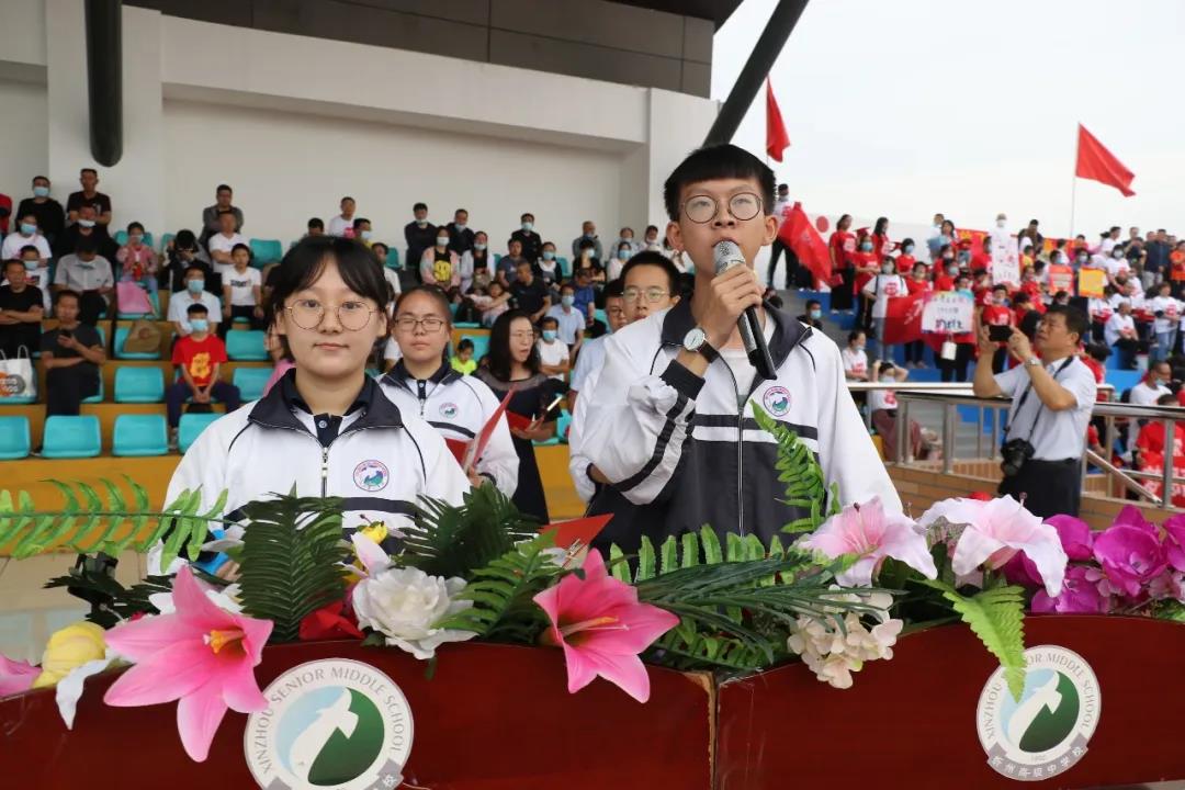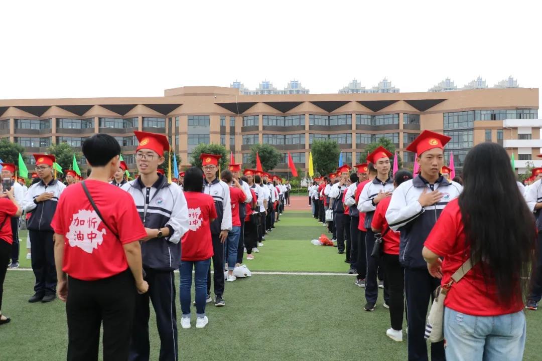 “少年智則國智,少年富則國富;少年強則國強,少年獨立則國獨立……”激昂奮進的聲音在北校區(qū)的操場上空回響,在全體高三學(xué)生《少年中國說》激情澎湃的誦讀聲中,本次大會正式開始。莊嚴(yán)的升旗儀式后,學(xué)生代表、教師代表和家長代表依次獻詞:好友同窗與共的奮斗時光,老師日復(fù)一日的悉心陪伴,父母無私無盡的付出關(guān)愛,在一句句溫情感人的獻詞中歷歷浮現(xiàn),激蕩心靈。