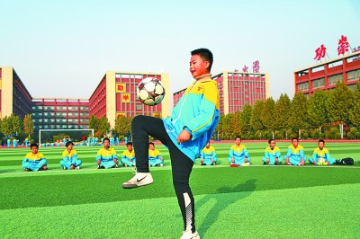10月25日,河北省衡水市志臻學(xué)校安平校區(qū),學(xué)生進行足球顛球項目比賽。本報記者 郭俊鋒攝/光明圖片