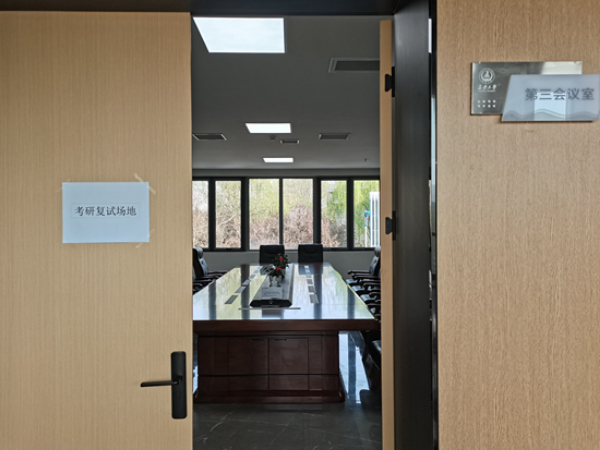 “考研復試,請勿打擾?!币虼耍瑢W校將會議室、辦公室、活動室等變身成“復試小屋”,配備上路由器、三腳架、電腦轉(zhuǎn)換接頭、接線板等設備,并掛上相應的提示牌,還有師生志愿者進行現(xiàn)場服務。這樣的復試場所,不僅讓校內(nèi)學生享受到“貴賓待遇”,也得到了外校考官的贊賞。