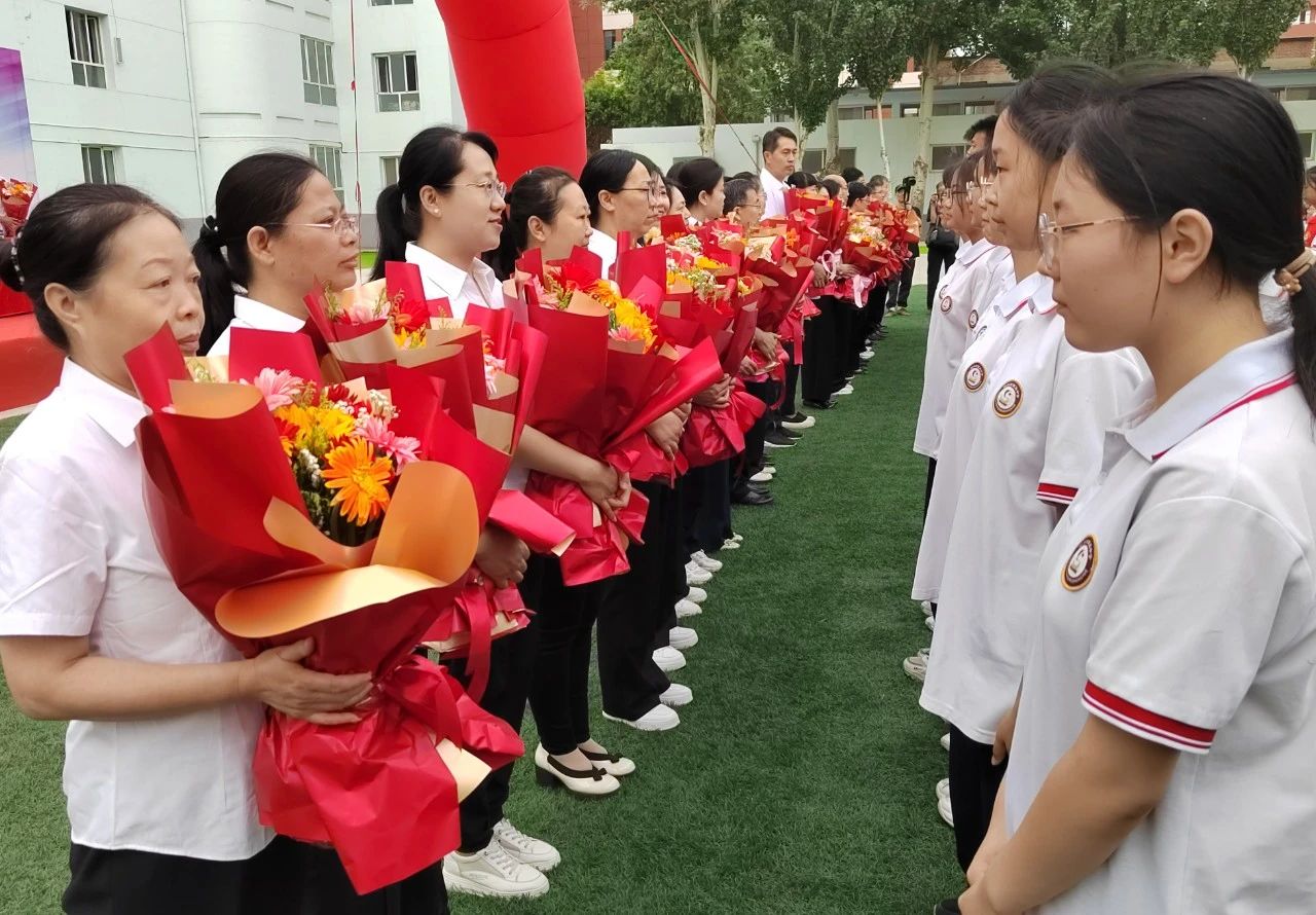 趙俊瑞校長為初三學子頒發(fā)畢業(yè)證書,隨著一份份畢業(yè)證書的發(fā)放,畢業(yè)生們與五中的故事也將落下帷幕,但青春不散,記憶不散。