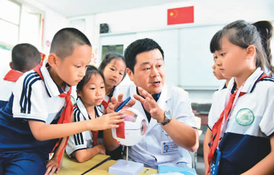 近日,在貴州省黔東南苗族侗族自治州從江縣城關(guān)第三小學(xué),眼科醫(yī)生給學(xué)生講解健康用眼知識。(石宏輝 攝 人民視覺) 盼望著,盼望著,暑假來臨了,孩子們期待著放松身心、度過多彩的假期生活。與此同時,暑期也是科學(xué)用眼、防控近視的關(guān)鍵期。如何防止暑假期間兒童青少年視力“滑坡”?如何更愛護(hù)我們“心靈的窗戶”?記者邀請北京同仁醫(yī)院眼科副主任醫(yī)師孟昭君為家長答疑解惑。 斜視、弱視也是兒童常見眼病 “進(jìn)入暑期,前來就診的孩子明顯增多了?!泵险丫榻B,在臨床上,兒童青少年常見眼病可大致分為3類:屈光不正(包括近視、遠(yuǎn)視、散光等)、眼表疾病(如結(jié)膜炎、角膜炎等)、其他病變(如斜視、白內(nèi)障、青光眼、眼底病變等)。其中,屈光不正是兒童最常見的眼病。 什么是屈光不正?孟昭君介紹,人的眼球就像一架照相機,屈光度就是眼球這個照相機“鏡頭”的光學(xué)參數(shù)。當(dāng)眼睛在放松狀態(tài)下,外界的平行光線經(jīng)眼睛的屈光系統(tǒng)折射后,不能在視網(wǎng)膜黃斑中心凹聚焦,無法產(chǎn)生清晰的成像,即為屈光不正,包括近視、遠(yuǎn)視、散光等。 孩子剛出生時,一般都處于生理性的遠(yuǎn)視——兒童眼球和視力是逐步發(fā)育成熟的,新生兒的眼球較小,眼軸較短,此時雙眼處于遠(yuǎn)視狀態(tài)。隨著兒童生長發(fā)育,眼球逐漸長大,眼軸隨之變長,生理性的遠(yuǎn)視會逐漸消失,視力逐步提高,完成“正視化過程”。比較理想的情況是兒童到12歲后才由遠(yuǎn)視眼發(fā)育成正視眼。 “正視化前的遠(yuǎn)視大多為生理性遠(yuǎn)視,是一種‘遠(yuǎn)視儲備’,可以理解為‘對抗’發(fā)展為近視的‘緩沖區(qū)’。如果‘遠(yuǎn)視儲備’被消耗得過多、過快,孩子就有可能較早出現(xiàn)近視?!泵险丫嵝眩h(yuǎn)視儲備也不是越多越好,兒童期的生理性遠(yuǎn)視一般不影響視力發(fā)育。當(dāng)兒童遠(yuǎn)視度數(shù)過高,可能會出現(xiàn)視疲勞、屈光調(diào)節(jié)性內(nèi)斜視等問題,甚至可能影響孩子的視力發(fā)育導(dǎo)致弱視。因此,如果孩子遠(yuǎn)視度數(shù)過高,就需要在醫(yī)生指導(dǎo)下進(jìn)行相關(guān)矯正。 孟昭君觀察發(fā)現(xiàn),近年來,在臨床上斜視患兒有增多的趨勢。“斜視是一種常見的兒童眼病,但并不是斜著眼睛看東西就叫‘斜視’?!彼忉屨f,斜視是雙眼視軸不平行,就是當(dāng)一眼注視目標(biāo)時,另一眼沒有同步協(xié)調(diào),而是發(fā)生了偏斜。這種偏斜可以表現(xiàn)為向內(nèi)偏斜,也就是人們常說的“斗雞眼”;也可以向外偏斜、向上或向下偏斜,有的斜視甚至是旋轉(zhuǎn)性的?;加行币暤膬和枰霸缇驮\,避免影響雙眼視覺功能發(fā)育。 何為弱視?專家介紹,弱視是指患者單眼或雙眼最佳矯正視力低于相應(yīng)年齡正常兒童,并且眼部檢查無器質(zhì)性病變,或雙眼最佳矯正視力相差2行及以上,視力較低眼為弱視。單眼斜視、屈光參差、高度屈光不正等因素都有可能導(dǎo)致弱視的出現(xiàn)。大部分的弱視可以治愈,且年齡越小、發(fā)現(xiàn)越早,治療效果越好,年齡越大越難治療。 “近年來,我國要求對0至6歲兒童和中小學(xué)生進(jìn)行定期視力檢查,并建立兒童青少年視力健康檔案,這是非常有必要的。”孟昭君說,這有利于早期篩查出兒童青少年視力異常狀況,有助于實現(xiàn)對斜視、弱視等眼病的早發(fā)現(xiàn)、早診斷、早治療。 3歲以下兒童盡量別用電子產(chǎn)品 國家衛(wèi)健委數(shù)據(jù)顯示,2020年全國兒童青少年總體近視率為52.7%,其中6歲兒童為14.3%,小學(xué)生為35.6%,初中生為71.1%,高中生為80.5%。近視已成為當(dāng)下兒童青少年比較普遍的眼健康問題。 “近視的發(fā)病受先天和后天因素影響?!痹诿险丫磥恚暦揽刈龅迷皆缭胶?,0—6歲是兒童健康保護(hù)和近視防控關(guān)鍵期。 暑假期間,一些兒童青少年可能會長時間看電腦和電視、玩手機游戲等,導(dǎo)致無節(jié)制地用眼。在這種情況下,家長應(yīng)該如何進(jìn)行干預(yù)、防止孩子視力“滑坡”? “建議家長幫孩子把興趣轉(zhuǎn)移到別的方面,比如帶著孩子多進(jìn)行戶外活動,盡量少使用電子產(chǎn)品?!泵险丫ㄗh,3歲以下的兒童盡量不要使用電子產(chǎn)品;如果3—6歲兒童非要使用電子產(chǎn)品,一定要減少近距離用眼時間,控制使用總時間,每天使用電子產(chǎn)品總計不超過30分鐘;中小學(xué)生電子產(chǎn)品使用單次不宜超過15分鐘,每天累計不宜超過1小時。如果使用電子產(chǎn)品,在有條件的情況下應(yīng)盡量選擇屏幕較大且分辨率較高的電子產(chǎn)品,并盡量遠(yuǎn)距離觀看,建議的優(yōu)先順序為投影儀、電視、電腦、平板電腦,不建議手機。此外,學(xué)齡兒童還需牢記“20—20—20”用眼規(guī)則,即近距離用眼20分鐘,需要眺望20英尺(約6米)遠(yuǎn)的物體至少20秒。 科學(xué)、合理安排孩子的飲食,對近視防控也有重要影響。孟昭君建議,兒童青少年應(yīng)該做到營養(yǎng)均衡,不偏食、不挑食,適當(dāng)攝取富含各種維生素、蛋白質(zhì)和鈣的食物,比如新鮮蔬菜、水果、肉、魚、蛋、奶以及堅果等食物。此外,要少吃甜食及含糖量高的飲料,因為身體在代謝糖分的同時會消耗過量的維生素B1,并且阻礙鈣