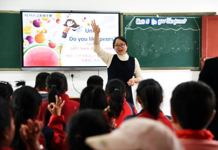 2023年4月13日,在貴州省黔西市鐵石苗族彝族鄉(xiāng)鐵石小學,來自廣州市增城區(qū)中新鎮(zhèn)第二小學的老師在上英語公開課。通訊員 熊軍萬 攝 背景:黨的二十大報告提出:“加快義務教育優(yōu)質(zhì)均衡發(fā)展和城鄉(xiāng)一體化”。2023年,中共中央辦公廳、國務院辦公廳印發(fā)《關(guān)于構(gòu)建優(yōu)質(zhì)均衡的基本公共教育服務體系的意見》,提出“到2035年,義務教育學校辦學條件、師資隊伍、經(jīng)費投入、治理體系適應教育強國需要,市(地、州、盟)域義務教育均衡發(fā)展水平顯著提升,絕大多數(shù)縣(市、區(qū)、旗)域義務教育實現(xiàn)優(yōu)質(zhì)均衡”。 解讀:當前,我國基礎(chǔ)教育還存在社會對公平而有質(zhì)量的教育需求與教育發(fā)展不平衡不充分之間的矛盾。推進基本公共教育服務體系建設(shè),成為解決教育發(fā)展不平衡不充分問題、建設(shè)高質(zhì)量教育體系、支撐教育強國建設(shè)的重要抓手。要深刻把握推進義務教育優(yōu)質(zhì)均衡發(fā)展的目標方向和重點任務,著力落實立德樹人根本任務,提高均衡發(fā)展水平,破解人民群眾急難愁盼問題,切實保障義務教育優(yōu)質(zhì)均衡發(fā)展按時有序有力推進?;竟步逃阵w系包括三方面內(nèi)容:一是保障義務教育,要實現(xiàn)“優(yōu)質(zhì)均衡”;二是保障各級各類教育的學生資助,要實現(xiàn)“應助盡助”;三是保障面向青少年學生的衛(wèi)生健康、文化體育、就業(yè)創(chuàng)業(yè)等其他基本公共服務,要實現(xiàn)“應保盡?!?。 基礎(chǔ)教育擴優(yōu)提質(zhì)行動 辦好更加公平、更高質(zhì)量的基礎(chǔ)教育