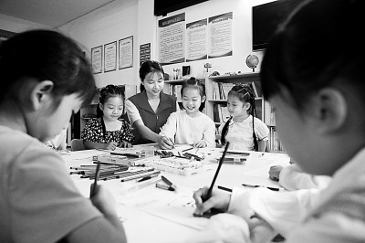 貴州省赤水市復(fù)興鎮(zhèn)新興社區(qū)“童伴媽媽”輔導(dǎo)孩子們繪畫。新華社發(fā)
