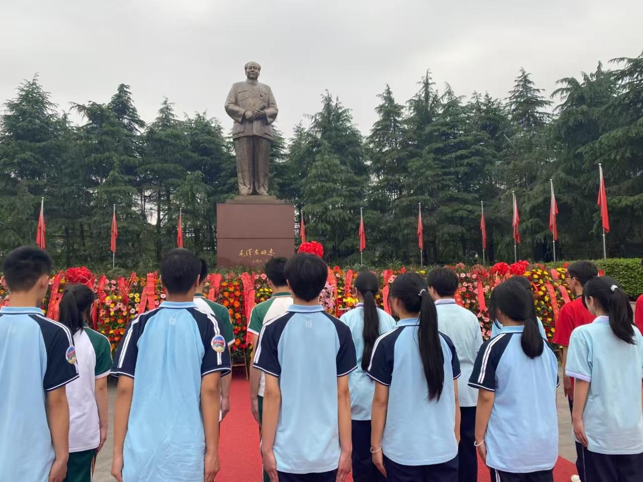 2024年4月24日,湖南省懷化市辰溪縣2000余名師生來(lái)到毛主席故鄉(xiāng)韶山開(kāi)展“我的韶山行”紅色研學(xué),圖為學(xué)生代表向毛主席銅像敬獻(xiàn)花籃。