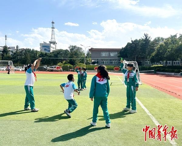 9月8日下午,記者來(lái)到固原市原州區(qū)第十一小學(xué)(以下簡(jiǎn)稱“原州十一小”)。課間15分鐘,教學(xué)樓前的空地上,學(xué)生們跳繩、打沙包、跳方格,歡笑聲此起彼伏;30分鐘大課間時(shí)段,在學(xué)校老師陪伴下,56個(gè)班級(jí)2976名學(xué)生參加“迷你軍訓(xùn)”、武術(shù)、球類運(yùn)動(dòng)、冰壺訓(xùn)練、自由運(yùn)動(dòng)等,響亮的口號(hào)聲在操場(chǎng)回蕩;體育課上,孩子們以班級(jí)為單位,踢足球、打羽毛球、打籃球,一張張笑臉上洋溢著蓬勃朝氣。