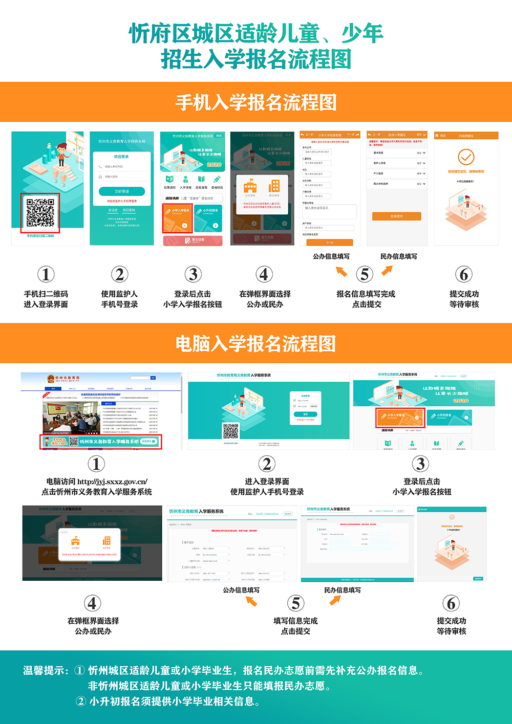 忻州市城區(qū)義務教育階段學校招生入學系統(tǒng)報名流程示意圖