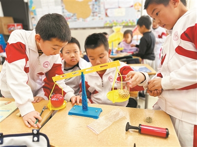 人大附中實(shí)驗(yàn)小學(xué)學(xué)生在做實(shí)驗(yàn)。
