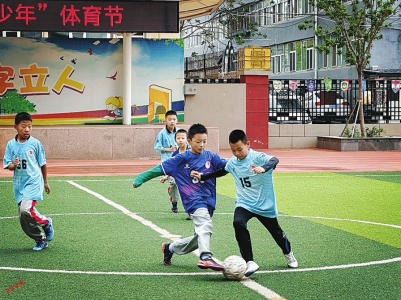 當(dāng)天下午,太原市雙東小學(xué)的大課間鈴聲準(zhǔn)時(shí)響起——“走,練射門去!”六年級(jí)學(xué)生張浩宇一把抓起足球,和隊(duì)友們直奔操場(chǎng)。上、下午各30分鐘的陽(yáng)光大課間正有序開展,韻律操、武術(shù)操的音樂(lè)響徹校園。