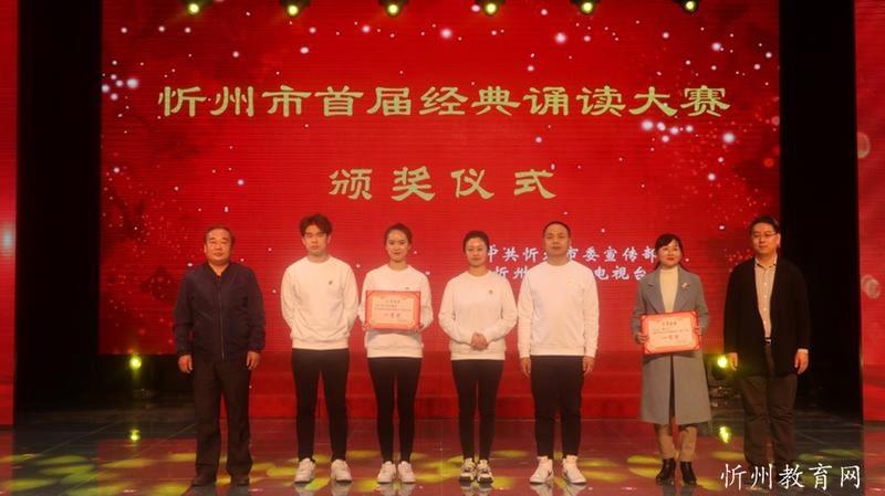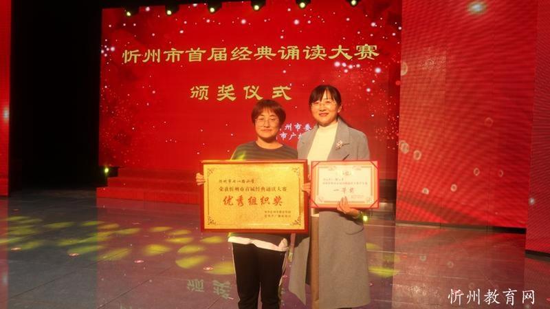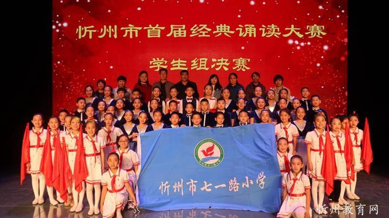 “共讀中華經(jīng)典,聆聽古詩(shī)書韻”。由中共忻州市委宣傳部主辦,忻州市廣播電視臺(tái)承辦 “忻州市首屆經(jīng)典誦讀大賽”經(jīng)過(guò)初賽海選和緊張激烈的復(fù)賽和決賽,于11月1日落下帷幕。本次比賽學(xué)生組共有四十一個(gè)參賽節(jié)目,經(jīng)過(guò)角逐,有十個(gè)節(jié)目進(jìn)入了決賽。決賽采取評(píng)委當(dāng)場(chǎng)亮分,現(xiàn)場(chǎng)點(diǎn)評(píng)的方式,最終評(píng)出一等獎(jiǎng)一名,二等獎(jiǎng)二名,三等獎(jiǎng)三名,最佳風(fēng)采獎(jiǎng)四名。七一路小學(xué)以98.51分的成績(jī)奪冠,榮獲學(xué)生組一等獎(jiǎng)。同時(shí)學(xué)校也榮獲優(yōu)秀組織獎(jiǎng)。