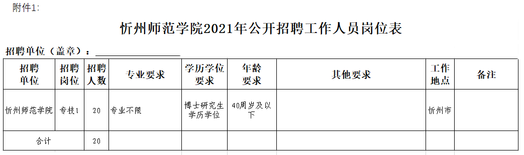 附件:1.忻州師范學院2021年公開招聘工作人員崗位表