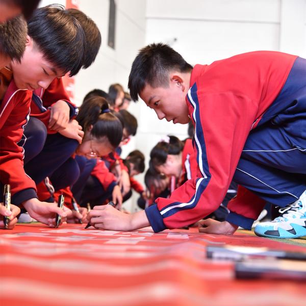 最后,全體師生、家長(zhǎng)代表在條幅上簽字留名,讓誓言落在實(shí)處,讓夢(mèng)想不再遙遠(yuǎn)。