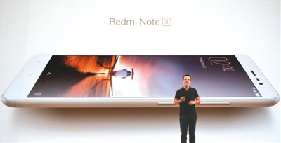 今年3月3日,在印度首都新德里,小米科技推出專門針對(duì)印度市場(chǎng)的紅米Note 3手機(jī)。圖為小米科技全球副總裁雨果·巴拉在發(fā)布會(huì)上介紹紅米Note 3手機(jī)。