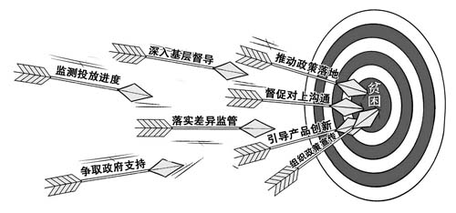 在召開金融扶貧工作匯報會、促進會督促推動的基礎上,分局領導經(jīng)常深入相關(guān)銀行業(yè)機構(gòu)調(diào)研指導、現(xiàn)場督導,督促其全面落實扶貧小額信貸按鄉(xiāng)鎮(zhèn)包干責任制,摸清包干鄉(xiāng)鎮(zhèn)建檔立卡貧困戶貸款需求,做到應貸盡貸。督促機構(gòu)認真落實“五位一體”扶貧工作要求,確保相關(guān)政策落實兌現(xiàn)。根據(jù)自身職責定位和業(yè)務特點,共同研究扶貧模式,研討扶貧產(chǎn)品,開展特色扶貧業(yè)務。