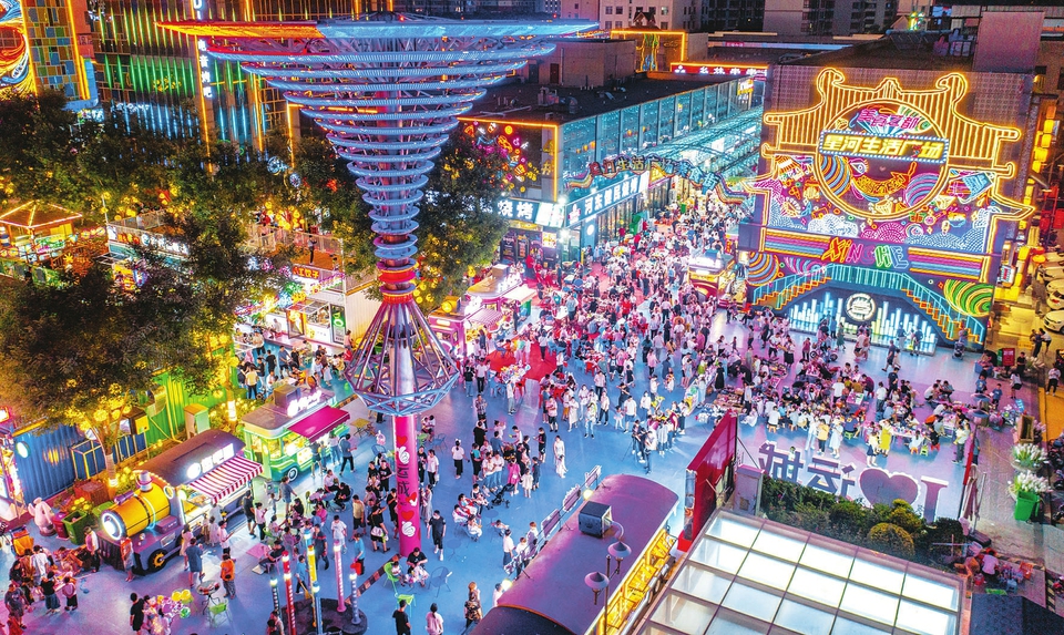 6月11日晚,市民在運城市鹽湖區(qū)星河生活廣場消夏。鹽湖區(qū)升級改造后的星河生活廣場燈光璀璨、人流如織,人們紛紛前來打卡、購物消費。