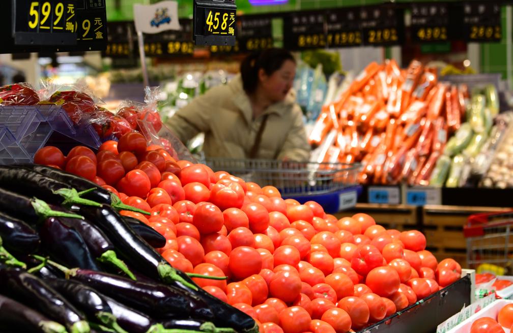 消費者在江蘇省無錫市一家超市里選購蔬菜(3月9日攝)。新華社發(fā)(還月亮攝)