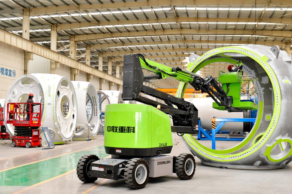 在位于山東省濱州市惠民縣的山東國創(chuàng)精密機械有限公司,工作人員對風電輪轂進行噴涂作業(yè)(1月26日攝)。新華社記者 郭緒雷 攝