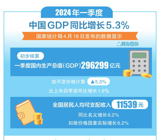 4月16日,中國(guó)經(jīng)濟(jì)2024年首季報(bào)出爐。國(guó)內(nèi)生產(chǎn)總值同比增長(zhǎng)5.3%,固定資產(chǎn)投資同比增長(zhǎng)4.5%,高技術(shù)產(chǎn)業(yè)投資同比增長(zhǎng)11.4%……一季度,中國(guó)經(jīng)濟(jì)增長(zhǎng)較快、質(zhì)效向好,實(shí)現(xiàn)良好開(kāi)局。但嚴(yán)峻復(fù)雜形勢(shì)下,有效需求不足、社會(huì)預(yù)期偏弱等問(wèn)題仍然存在,還需進(jìn)一步鞏固和增強(qiáng)經(jīng)濟(jì)回升向好態(tài)勢(shì)。