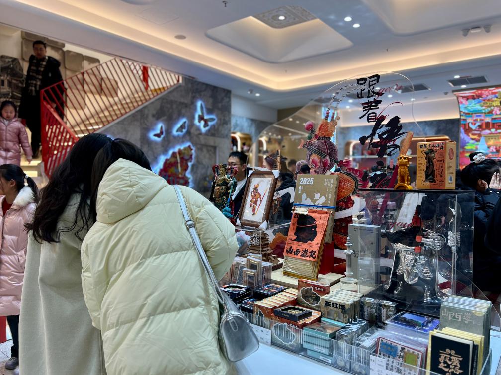 “山西文旅爆火后一直想來玩,特意在跨年檔安排了山西游?!背虝枣谜f,在為期5天的山西游中看了一些古建筑,很喜歡鴟吻元素,買了10個(gè)鴟吻徽章送朋友。西堂晉禮文創(chuàng)店經(jīng)理助理孔祥權(quán)告訴記者,隨著山西文旅火爆出圈,2024年跨年夜文創(chuàng)產(chǎn)品銷量比2023年同期翻了一番。