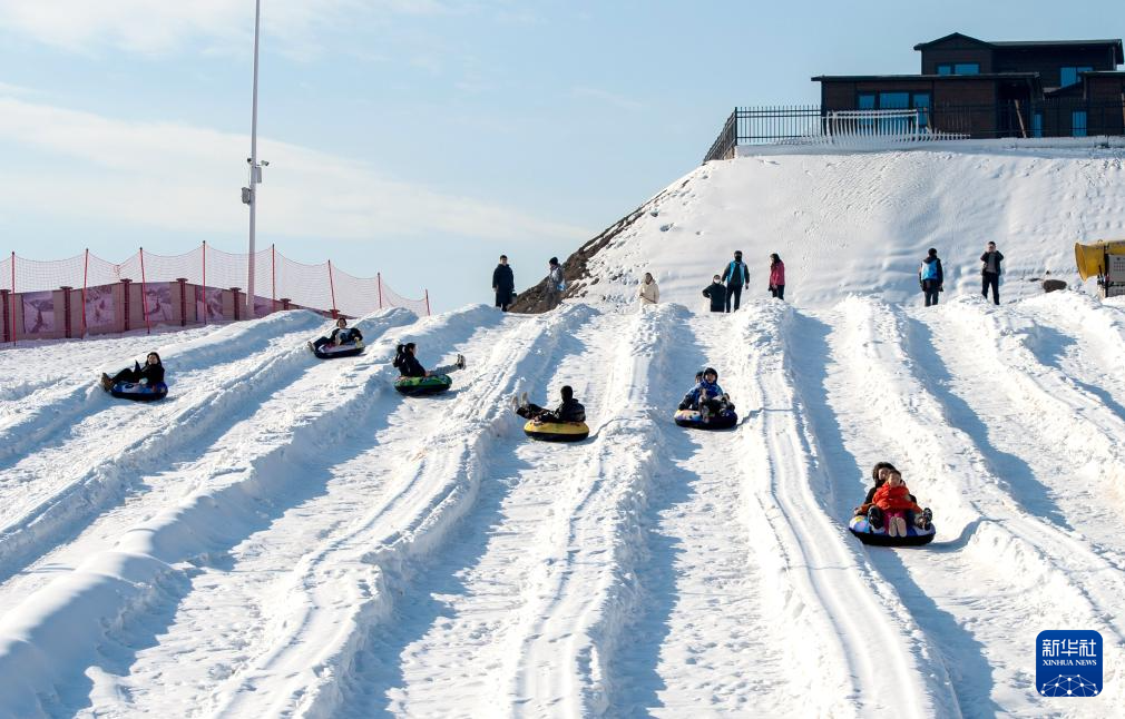 1月19日,在邯鄲市復(fù)興區(qū)東高河村滑雪場,游客在體驗滑雪圈項目。