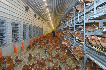 偏關縣坐落于我省西北部冷涼山區(qū),空氣清新、水源干凈、土壤優(yōu)質,這實打實的“生態(tài)家底”為優(yōu)質蛋品孕育提供了天然溫床,永奧生態(tài)農業(yè)于2019年應時落戶偏關縣窯頭鄉(xiāng)張家山村,建起高標準規(guī)?;腔\養(yǎng)蛋雞養(yǎng)殖基地——70畝蛋雞農場里,20萬只蛋雞正享受著立體棲架式散養(yǎng)系統(tǒng)帶來的“自由生活”。養(yǎng)殖基地內采食、飲水、糞便處理全流程自動化,環(huán)境控制系統(tǒng)精準調控溫濕度,蛋雞享有寬敞的活動空間,可自由覓食、沙浴,飼料則以當?shù)厥a的雜糧副產品為主?!半u群心情好,產的蛋自然優(yōu)質。”公司總經理劉開永笑著說。