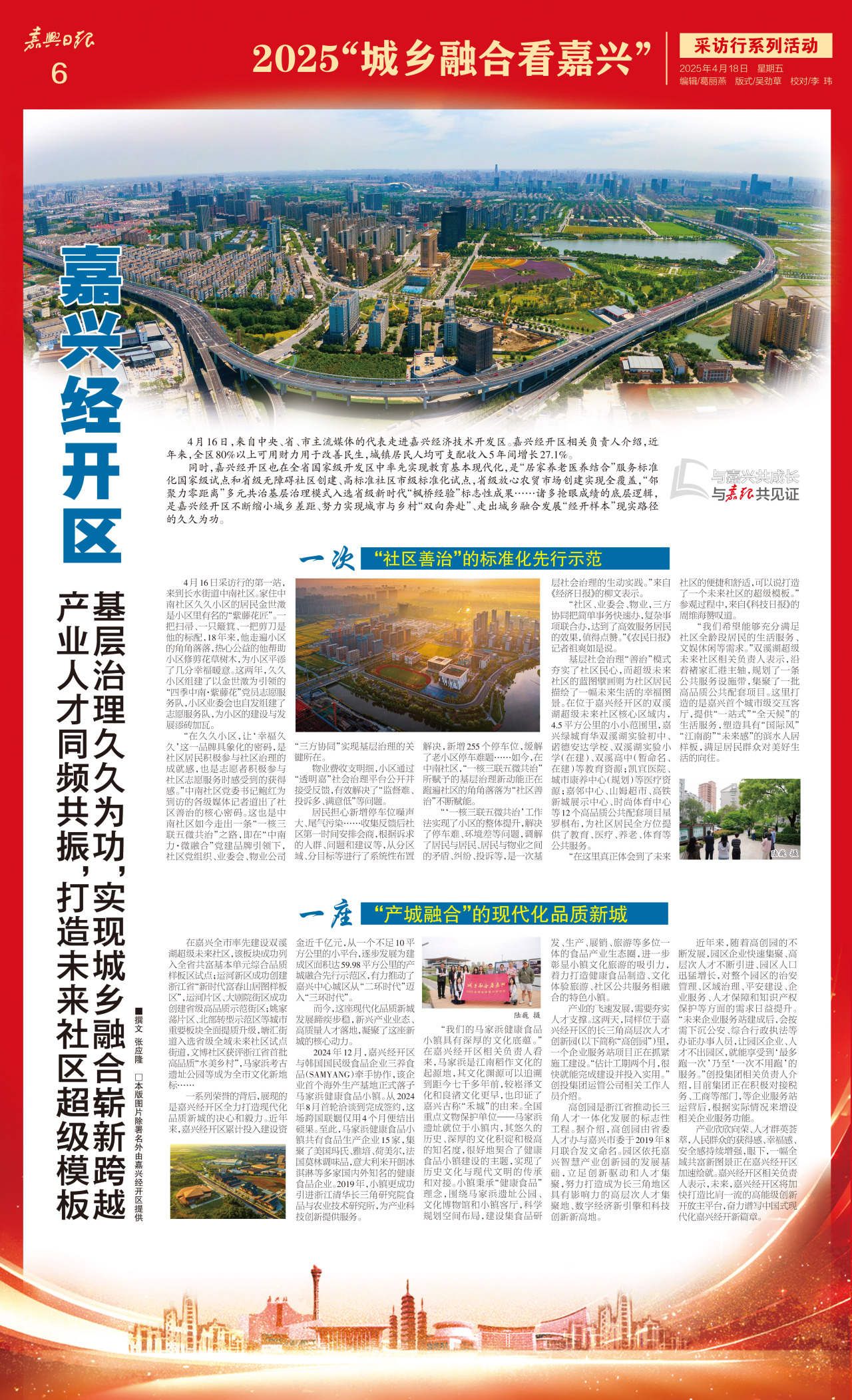同時,嘉興經(jīng)開區(qū)也在全省國家級開發(fā)區(qū)中率先實現(xiàn)教育基本現(xiàn)代化,是“居家養(yǎng)老醫(yī)養(yǎng)結(jié)合”服務標準化國家級試點和省級無障礙社區(qū)創(chuàng)建、高標準社區(qū)市級標準化試點,省級放心農(nóng)貿(mào)市場創(chuàng)建實現(xiàn)全覆蓋,“鄰聚力零距離”多元共治基層治理模式入選省級新時代“楓橋經(jīng)驗”標志性成果……諸多搶眼成績的底層邏輯,是嘉興經(jīng)開區(qū)不斷縮小城鄉(xiāng)差距、努力實現(xiàn)城市與鄉(xiāng)村“雙向奔赴”、走出城鄉(xiāng)融合發(fā)展“經(jīng)開樣本”現(xiàn)實路徑的久久為功。
