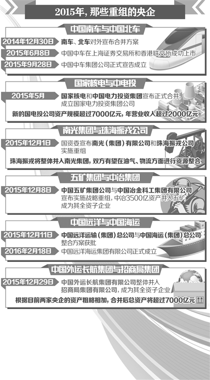 今年是國有企業(yè)改革落實年。在去年6對12家中央企業(yè)重組的基礎之上,2016年的央企重組和結構調整力度將更大,范圍將更廣,主要針對國有資本布局結構不合理、資源配置效率不高、同質化發(fā)展等問題,瘦身健體、苦練內功,提質增效。當然,央企重組是市場行為,完全按市場規(guī)則進行,不會造成壟斷——