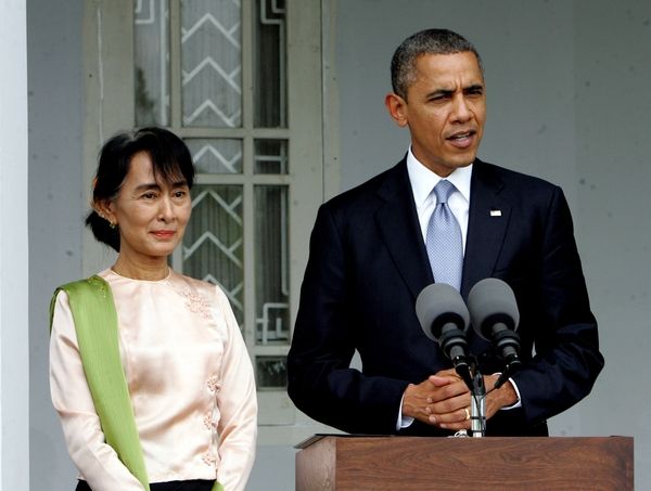 資料:2012年11月19日 ,美國(guó)總統(tǒng)奧巴馬(右)會(huì)見(jiàn)緬甸全國(guó)民主聯(lián)盟主席昂山素季后答記者問(wèn)。