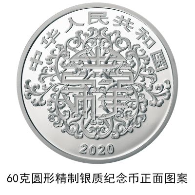 60克圓形銀質紀念幣為精制幣,含純銀60克,直徑40毫米,面額20元,成色99.9%,最大發(fā)行量20000枚。