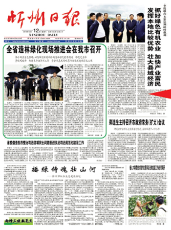 2015年9月9日至10日,全省造林綠化現(xiàn)場(chǎng)推進(jìn)會(huì)在忻州市召開(kāi),省委副書(shū)記、省長(zhǎng)李小鵬與參會(huì)代表一起觀摩我市的造林綠化工程,并主持召開(kāi)座談會(huì)。副省長(zhǎng)郭迎光和各市市長(zhǎng)、分管副市長(zhǎng)、林業(yè)局長(zhǎng);呂梁山生態(tài)脆弱區(qū)23個(gè)縣(區(qū))長(zhǎng);省直有關(guān)部門(mén)主要負(fù)責(zé)人;省直國(guó)有林管理局局長(zhǎng)參加。