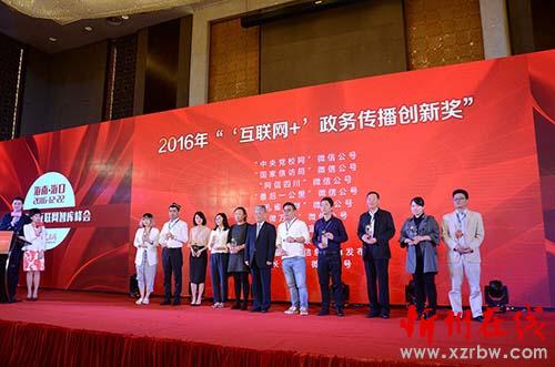 本報(bào)訊 12月22日,首屆全國互聯(lián)網(wǎng)智庫峰會(huì)暨第四屆網(wǎng)絡(luò)輿情論壇在海南省??谑新≈卣匍_。中央及各?。ㄊ?、自治區(qū))宣傳和網(wǎng)信部門領(lǐng)導(dǎo)、國內(nèi)業(yè)界知名專家、學(xué)者、政務(wù)新媒體代表等200余人齊聚一堂,圍繞“‘十三五’供給側(cè)改革背景下輿論新格局”主題,深入探討互聯(lián)網(wǎng)內(nèi)容建設(shè)與供給、政務(wù)輿情回應(yīng)和引導(dǎo)的新理念、新思路、新格局。會(huì)議期間,舉行了2016年“互聯(lián)網(wǎng)+政務(wù)傳播創(chuàng)新獎(jiǎng)”、“政務(wù)輿情回應(yīng)優(yōu)秀獎(jiǎng)”、“城市新媒體傳播優(yōu)秀獎(jiǎng)”和“全國政法新媒體建設(shè)優(yōu)秀獎(jiǎng)”頒獎(jiǎng)儀式。忻州隨手拍榮獲2016年全國“互聯(lián)網(wǎng)+政務(wù)傳播創(chuàng)新獎(jiǎng)”,為十佳之一。